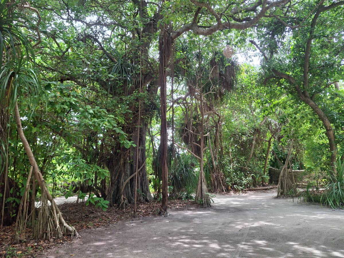 После завтрака пошли в местный сувенирный магазин. Фото по пути. Кокосы растут. Красивый фрукт. Это пандан или ложный ананас. Местные кошки. На острове есть врач. Он принимает здесь. Местный магазин сувениров и не только. На острове 4 общественных бассейна и бары около них. Потом мы плавали, плавали, плавали. А обедать пошли вот в этот бар у бассейна. На карте острова он внизу. Мероприятия на вечер. Идем дальше.