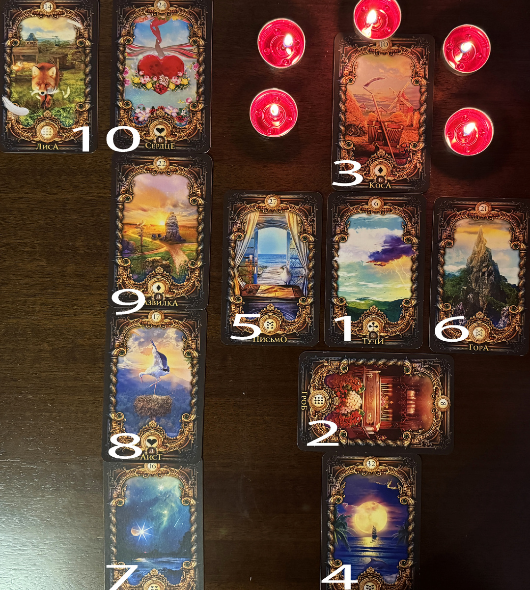 И снова здравствуйте! Перед вами расклад на картах Ленорман - предстоит столкнуться с выбором, коварством и ложью в отношениях.
