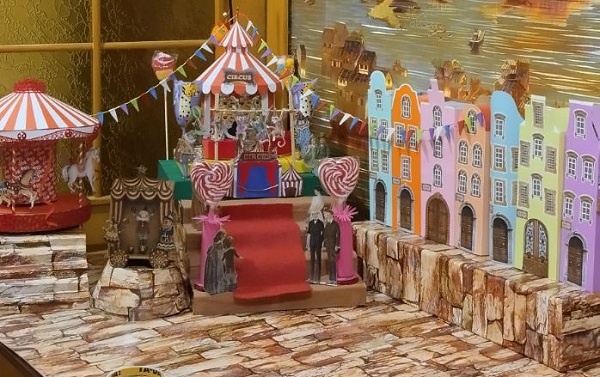 Накануне семнадцатой годовщины свадьбы я стала думать о том, что подарить любимому мужу. Идей было много. Наряду с ними встал вопрос о том, как упаковать подарок. И тут в голову пришла совершенно необычная идея! Мне захотелось полностью отойти от стандартов и упаковать свои многочисленные подарки и подарочки в… «город»! А именно, создать из бумаги архитектуру и спрятать внутри каждого здания подходящий по смыслу сюрприз. Все это великолепие должно было разместиться на раскладном столе в кухне. Столешница превратилась в мостовую за счет обоев с принтом «булыжник». Домики клеила из коробок, изображения фасадов отыскивала в интернете и распечатывала в фотомастерской. Все секреты содержимого зданий выкладывать не буду, расскажу только часть информации. В трех ярких домиках с адресом: улица Ароматная — упаковки с чаями ручной работы. Внутри коробок, стилизованных под чешские домики, конечно, спиртное, о чем ярко свидетельствует название улицы — Хмельная! Коробка, являющаяся основанием для д