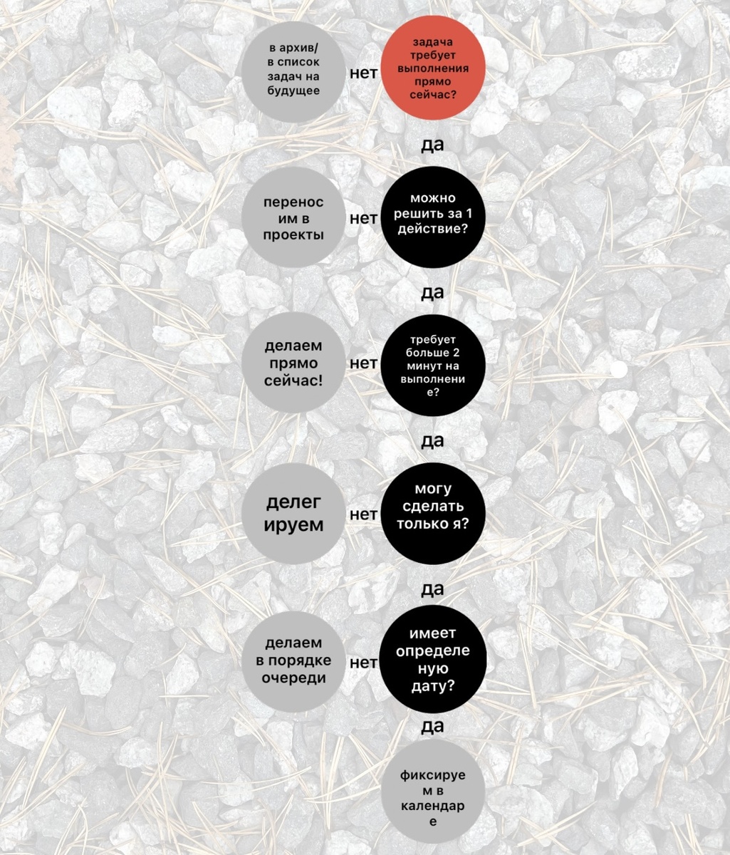 Эта статья будет полезна тем, кто испытывает трудности с дисциплиной. Раньше, у меня всегда была 1 проблема: я любила записывать все задачи в заметки, а потом не знала за что взяться, не знала как расставить приоритеты, больше прокрастинировала и жила в мечтах о делах, и я не могла назвать себя высоэффективным человеком. А сейчас могу. Так что, если вы: - не умеете планировать дела; - только копите задачи, но не делаете их; - считаете, что не эффективно тратите свое время; - начинаете делать, но не доводите дело до конца; - держите все дела в голове и не знаете за что взяться; То обязательно попробуйте мой способ. Уже несколько лет я пользуюсь методикой GTD. Самый большой плюс этот методики в том, что я научилась заканчивать начатые дела. За это время я ее сделала удобной для себя, и не помню как там все было в первоисточнике. Поэтому дам вам свою версию. Сначала принципы: 1. Не держим задачи в голове — всё нужно фиксировать. 2. У каждой задачи должен быть срок. И если вы