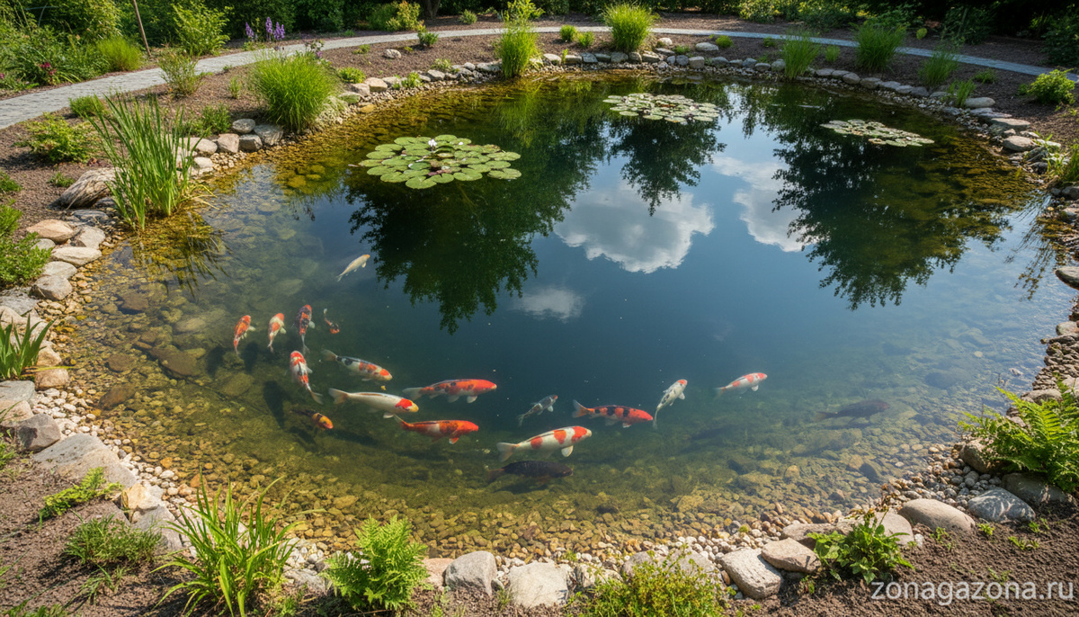 Как приятно в знойный день погрузиться в прохладу водоема! Хорошо заняться рыбалкой и поймать пару рыб на уху или жарение! Но далеко не всегда дачный участок находится рядом с рекой или озером. Не нужно отчаиваться. Приложите немного усилий и создайте пруд для рыбы и купания у себя в саду. Как это сделать, мы расскажем в нашей статье. Небольшие прудики есть у многих владельцев земельных участков. Их сооружают обычно для украшения ландшафта, освежения воздуха. Реже – для разведения декоративных рыбок. Для купания возводятся бассейны. Но человеку намного приятнее поплавать в живом водоеме, понаблюдать за движением рыбок, других водных обитателей. Мы предлагаем осуществить строительство пруда, где будут водиться карпы кои и где можно будет поплескаться в летнюю жару. Искусственные пруды, сооружаемые на дачной территории, имеют ряд преимуществ над бассейнами. Купить дачу на берегу озера, реки очень сложно, так как цены на них зашкаливают. Искусственная купальня на территории участка – это