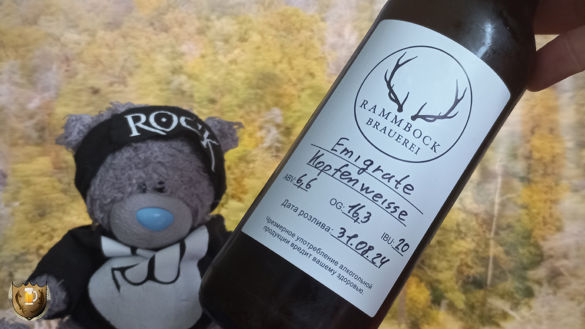 Моё почтение! Сим прекрасным осенним утром, мы держим в руках очередной релиз от домашней пивоварни Rammbock Brauerei! Пейсательство, разумеется, выходит с задержкой, так что в дежурный бокал пиво попало спустя 20 дней после розлива. Свежак! А коль скоро пиво нам презентовали на обзор безвозмездно, то грех не достать знаменитый еврейский бокал! Итак, слово пивовару: EMIGRATE. Классический немецкий WeizenBock, но с двойным сухим охмелением американскими хмелями Sabro Cryo и BRU- 1 Lupomax.