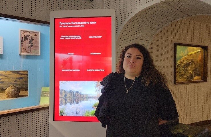 Интерактивные киоски содержат различную справочную и историческую информацию, а также викторины для детей и взрослых. Новый интерактивный киоск теперь есть и в историческом зале: здесь есть возможность ознакомиться с историей города, посмотреть карту Богородского уезда. Изюминка этого киоска – это Богородск на почтовых карточках Кампеля в цвете, 1913 года.