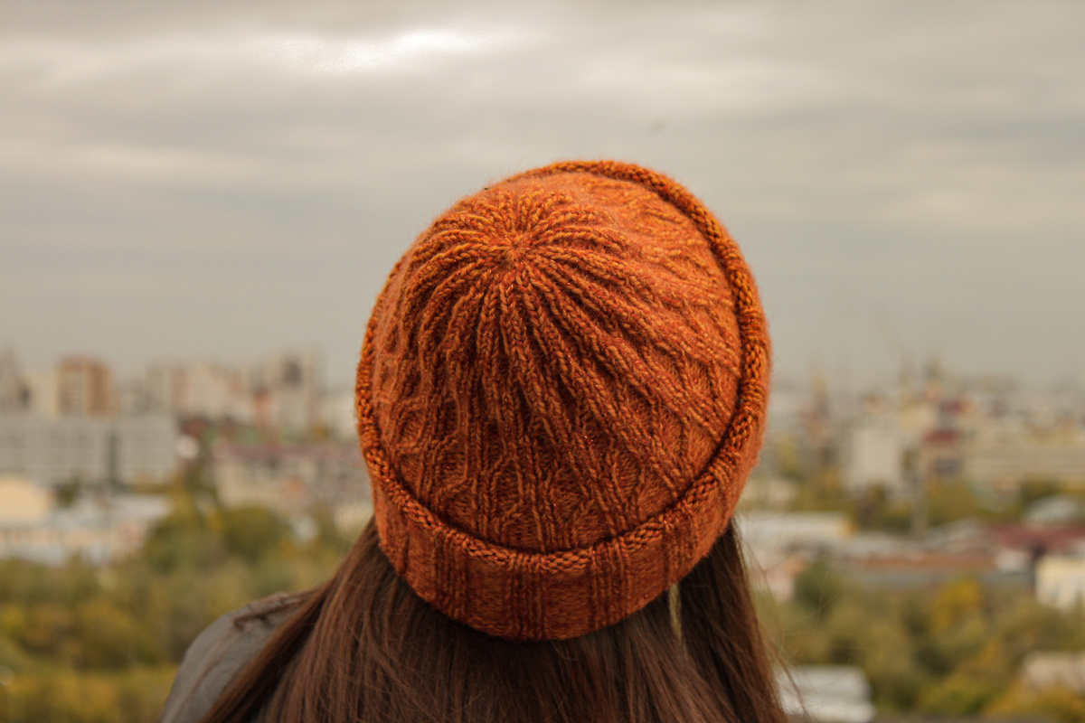 Всем доброго времени суток, друзья! Я к вам снова с утра пораньше с отличными новостями! В статье ниже на днях делилась, что вяжу шапку и подумываю насчет нового описания: Так вот, шапка довязана! Описанию быть! Пряжа и спицы Пряжа: Народная классика от Пехорки в цвете Горчица и Alize Angora Gold Simli (36, Терракот). Спицы: номер 3. В данном варианте у меня шапочка с двойным отворотом, но в описании сделаю расчеты и на одинарный. Отворот, кстати, я тут не фиксировала, так больше вариативности, как мне кажется. Главная фишка этой модели - это узор, плавно переходящий в макушку. Макушка здесь не тыковка, как могло показаться, а круглая, на фото ниже вы можете оценить, как аккуратно она смотрится. А это вид в профиль: Хотелось украсить эту шапочку простым узором, который внесет так называемую изюминку и, по-моему, шалость эта мне удалась. А как вам кажется? Сразу скажу,что я нахожусь сейчас на такой стадии работы над описанием, когда все оформлено только в мыслях, но никаких расчетов я е