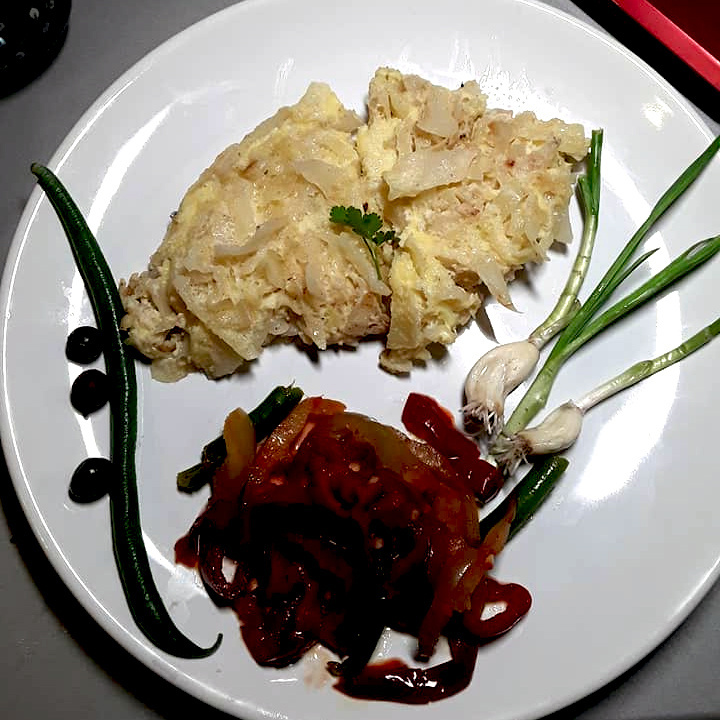 На ужин - нежнейший омлет с капустой. Лук (50 г) и нашинкованную мелко капусту (75-100 г) потушить с 20 г сливочного масла. Можно до мягкости, можно почти сырую - кто как любит. Взбить 3 яйца и 2 ст. л. молока. Залить капусту яичной смесью. Под крышку на 5 минут. Получается 2 порции омлета. КБЖУ одной порции (180 г) – 321/21,0/22,7/7,9. К омлету - салат из сырых перцев и зеленой фасоли. Заправка - лимонный сок + оливковое масло. + 4 фото Рецепт на странице Автор рецепта – Вера Абрамова Расчёт КБЖУ сделан с помощью Telegram-чат-бота https://t.me/vesipitaniebot © Почтенный возраст Online и Рецепты для диабетиков