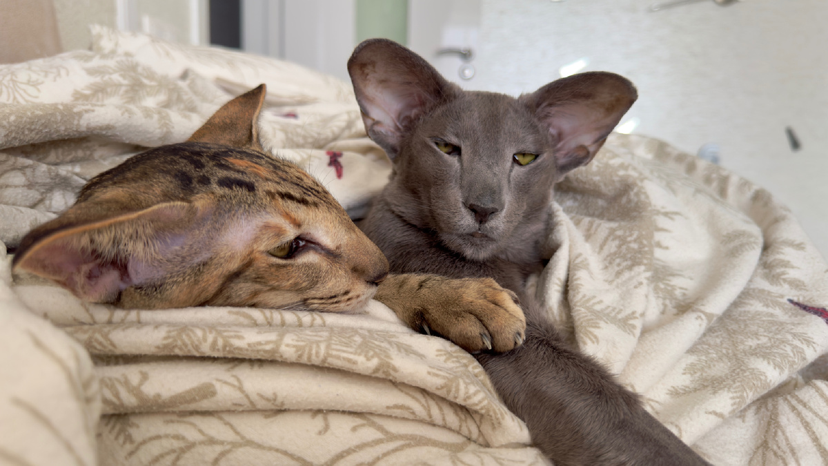 🐾💜 Будни ориентальных кошек: Мамбы и Обояшки 💜🐾 Дорогие подписчики, мне так хотелось немного отдохнуть после напряженных дней, связанных с операцией Мамбы. В прошлом уикенде я закрылась от всех, чтобы морально восстановиться. Ваши слова поддержки и внимание настолько воодушевляют! Спасибо вам за это! Теперь к свежим новостям о состоянии нашей сладкой Мамбы. В выходные она все еще ощущала слабость из-за наркоза и была сонливой. Все эти дни я провела рядом с ней, наблюдая и ухаживая. На второй день после процедуры Мамба снова начала кашлять, несмотря на уверения врачей, что это не должно происходить минимум месяц. Но, видимо, наш случай не так прост. Мы продолжаем делать ингаляции, и Мамба, вероятно, уже привыкла к ним — не вырывается и, возможно, даже ощущает облегчение. Рады поделиться хорошей новостью: результаты анализа на бактерии пришли — роста бактерий нет, значит, это не инфекция! Но мы все еще ждем результаты цитологии, и волна беспокойства иногда накатывает, наполняя го