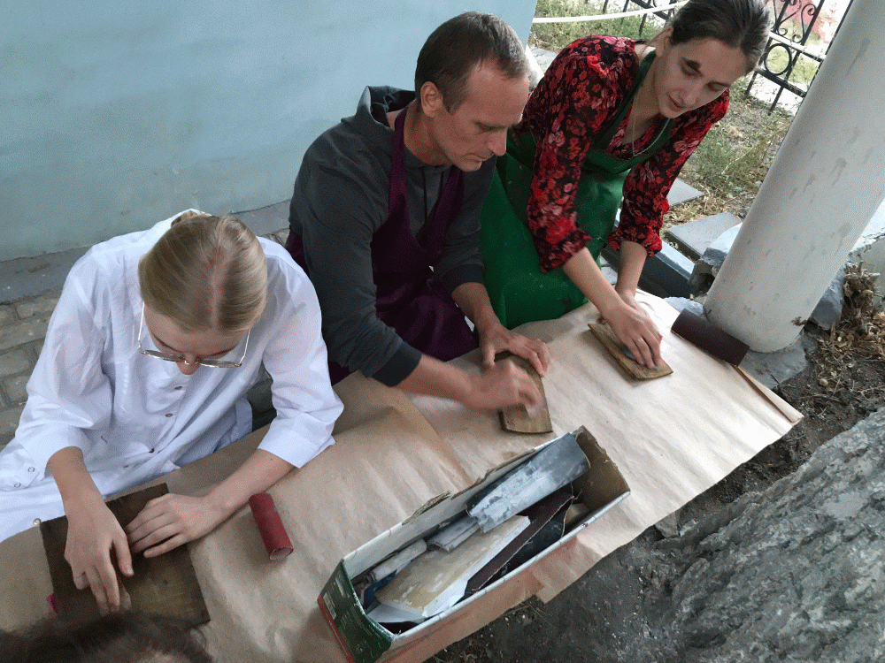 усердные студенты-академики приводят в порядок тыльную сторону тоненьких южнорусских подокладниц: Много много внимательного труда и наблюдений нужно, чтоб стать хорошим иконописцем .