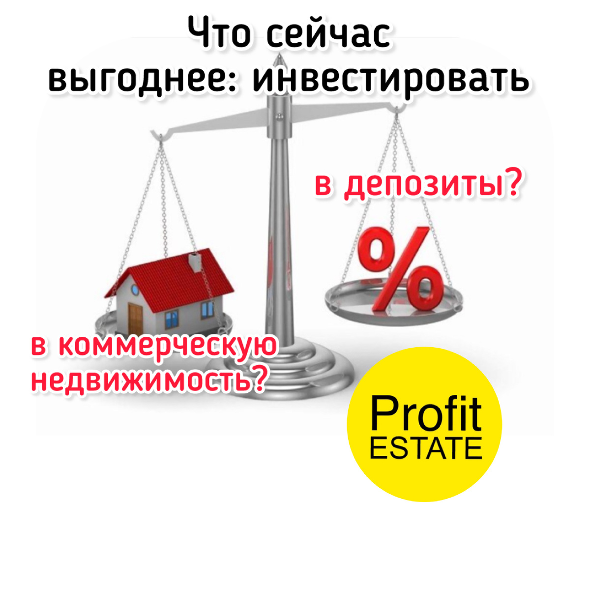 Привет, друзья. Что сейчас выгоднее: инвестировать в коммерческую недвижимость или хранить средства на банковских вкладах? Депозиты Повышение ключевой ставку до 19% годовых открыло новые возможности для инвестиций и сбережений. У инвесторов повысился интерес к банковским депозитам(сейчас некоторые банки предлагают вклады до 21% годовых). При этом доходность депозитов всегда ограничена временным периодом, а ставка постоянно двигается. И угадать в какую сторону очень сложно. И тут возможны вариант: Оптимальным решением при выборе депозита станет распределение средств в зависимости от своих финансовых потребностей на несколько вкладов с разным сроком окончания, например на шесть месяцев, один год и два-три года. Недвижимость Тут игра вдолгую, а вложения в качественную торговую недвижимость позволяют заработать как на росте цены квадратного метра, так и на последующей сдаче помещения в аренду. В отличие от депозитов, ставка по которым за последние время то сильно опу