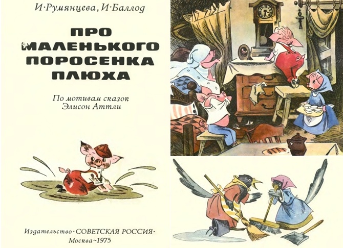 Книга «Про маленького поросенка Плюха», первая книга в моем детстве, которую я прочитал сам, когда мне было лет шесть. Книга написана по мотивам сказок Элисон Аттли (Элис Джейн Тэйлор; 1884—1976). Это английская писательница, автор множества книг для детей, в том числе серии сказок о поросёнке Сэме, часть которых была пересказана Ириной Румянцевой и Ингой Баллод, и издана под названием «Про маленького поросёнка Плюха» в 1975 году издательством «Советская Россия». Очень добрый и удивительно спокойный фон книге создают иллюстрации художника Евгения Алексеевича Медведева. Приключения маленького поросенка Плюха, самого младшего в своей семье, наивного, доброго, отзывчивого и сейчас вызывают у меня улыбку и приятные воспоминания. Думаю, малыши возраста 3-6 лет с удовольствием послушают или если умеют читать, то прочитают сами эту замечательную книжку. Обязательно найдите ее в интернете, в книжных магазинах или у знакомых.