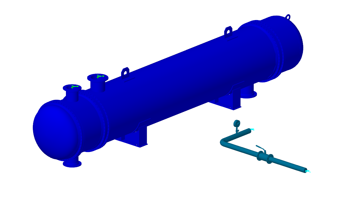 Далее приступим к созданию арматуры, манометра, теплообменника с помощью импортируемой графики и расстановке узлов подключения: