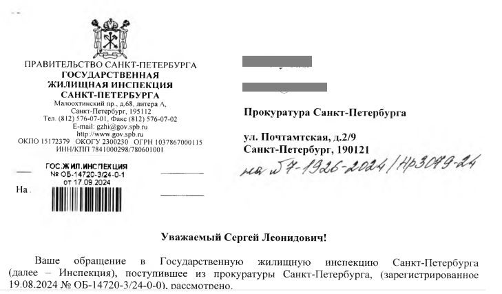 День добрый ! Ну как добрый , обычный такой день . Всё продолжается, продолжается в обычном для чиновников порядке, я жалуюсь , они упорно пинают мои жалобы. Итак игра в "футбол " продолжается. Немного напомню предысторию , в ноябре 2023 у меня в квартире отключили отопление и горячую воду, отключили аж на 24 часа . Соответственно мною было подано заявление в ТСЖ о перерасчете и выплате неустойки. Естественно ( для него) председатель в перерасчете отказал заявив об отсутствии оснований. Далее была направлена жалоба в ГЖИ и они так же не нашли оснований для перерасчета и привлечения к ответственности ТСЖ . В ответ на их нежелание работать и проводить проверку я подал жалобу на имя прокурора города , которую прокуратура благополучно направила на рассмотрение обратно в ГЖИ. И вот по прошествию 2 месяцев ( срок рассмотрения они продляли ) пришёл вот такой ответ И естественно никаких нарушений в действиях своих подчинённых господин Матюхин не обнаружил . Старался , искал , проводил