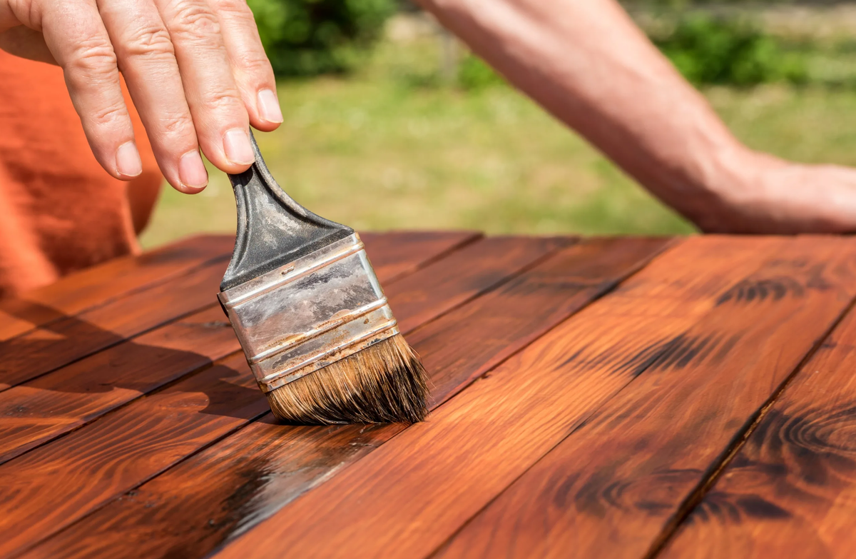 Фасады, садовую мебель, беседки, террасы красят стойкими к атмосферным воздействиям полиуретановыми, алкидными, алкидно-уретановыми лаками.