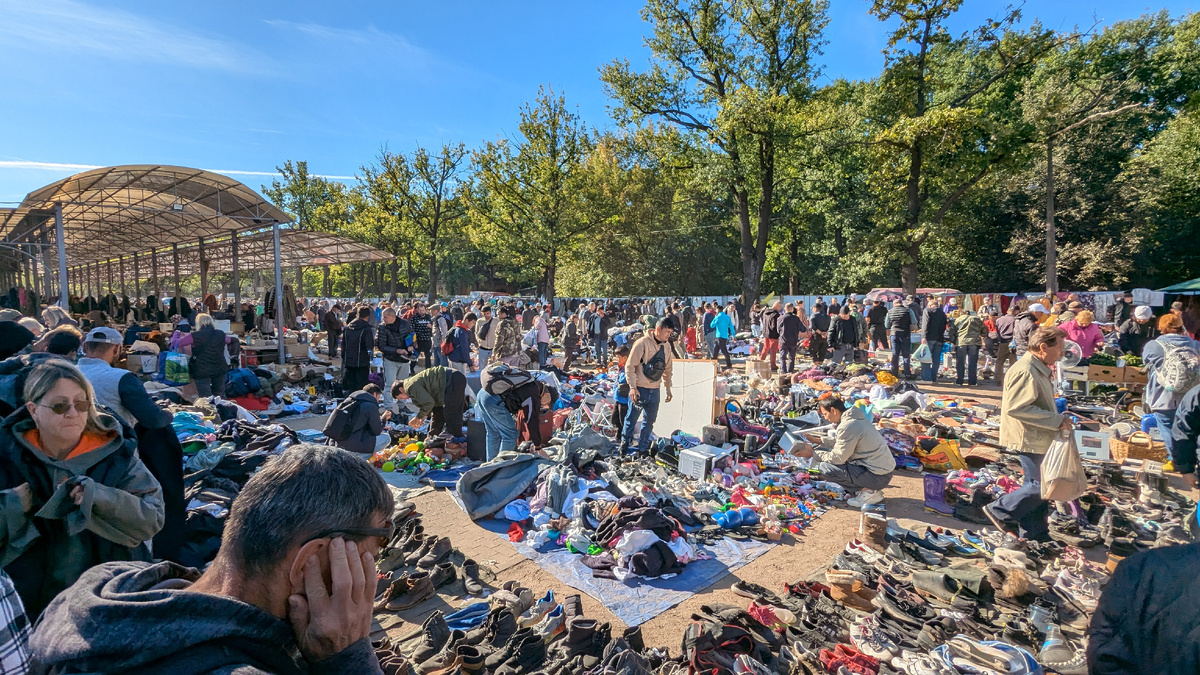 Воскресенье порадовало солнечной и теплой погодой. Не припомню такого теплого сентября! Неужели климат в Петербурге налаживается? Раз уж так повезло с погодой, решили поехать погулять по известнейшему блошиному рынку Питера - знаменитой Уделке. Бываем там регулярно, и как покупатели, и просто поглазеть, и даже кое-что продали (сервиз в антикварную лавку и часы с рук). Раньше заходили с цивилизованной части Уделки, лавочек с антиквариатом. А сегодня решили начать с самого интересного - стихийного рынка "на земле". Надо признаться, что с непривычки он просто ошеломляет. Огромное поле с горами самого разнообразного старья! Кажется, что невозможно найти здесь что то стоящее. Однако, все самые интересные покупки делаются именно здесь. В антикварной лавочке продавец отлично знает цену каждой вещи. А на картонке, на земле, порой встречаются настоящие сокровища за бесценок. Вот и бродят прилично одетые "искатели сокровищ" среди гор хлама в поисках чуда. Иногда встречаются просто постапокалипти