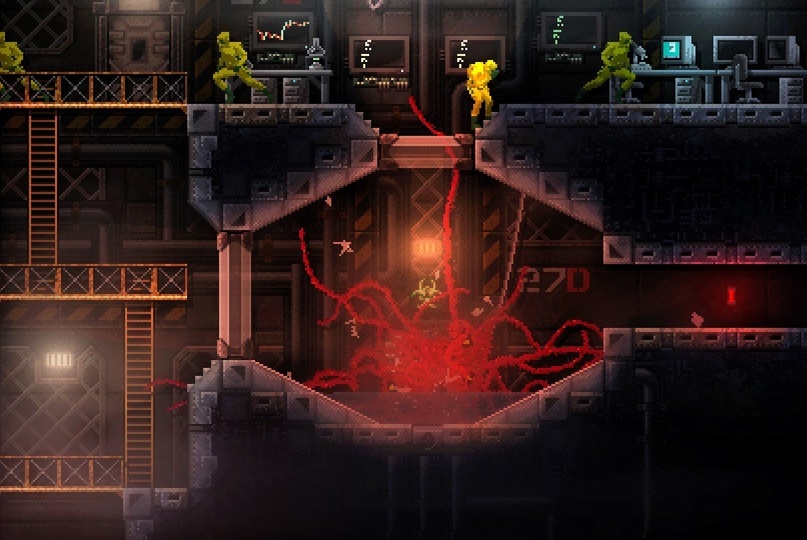 В Carrion карты нет. Возможно, разработчики решили, что держать карту существу с щупальцами будет не очень удобно. Игра относительно коридорна, поэтому я заблудилась в ней только один раз, в конце игры, где была возможность проходить уровни в разном порядке. Насладилась отсутствием карты по полной. Сначала наматывала круги, пытаясь понять, где я пропустила нужный поворот, в который ещё не ходила, а потом даже по прохождению с трудом нашла место.