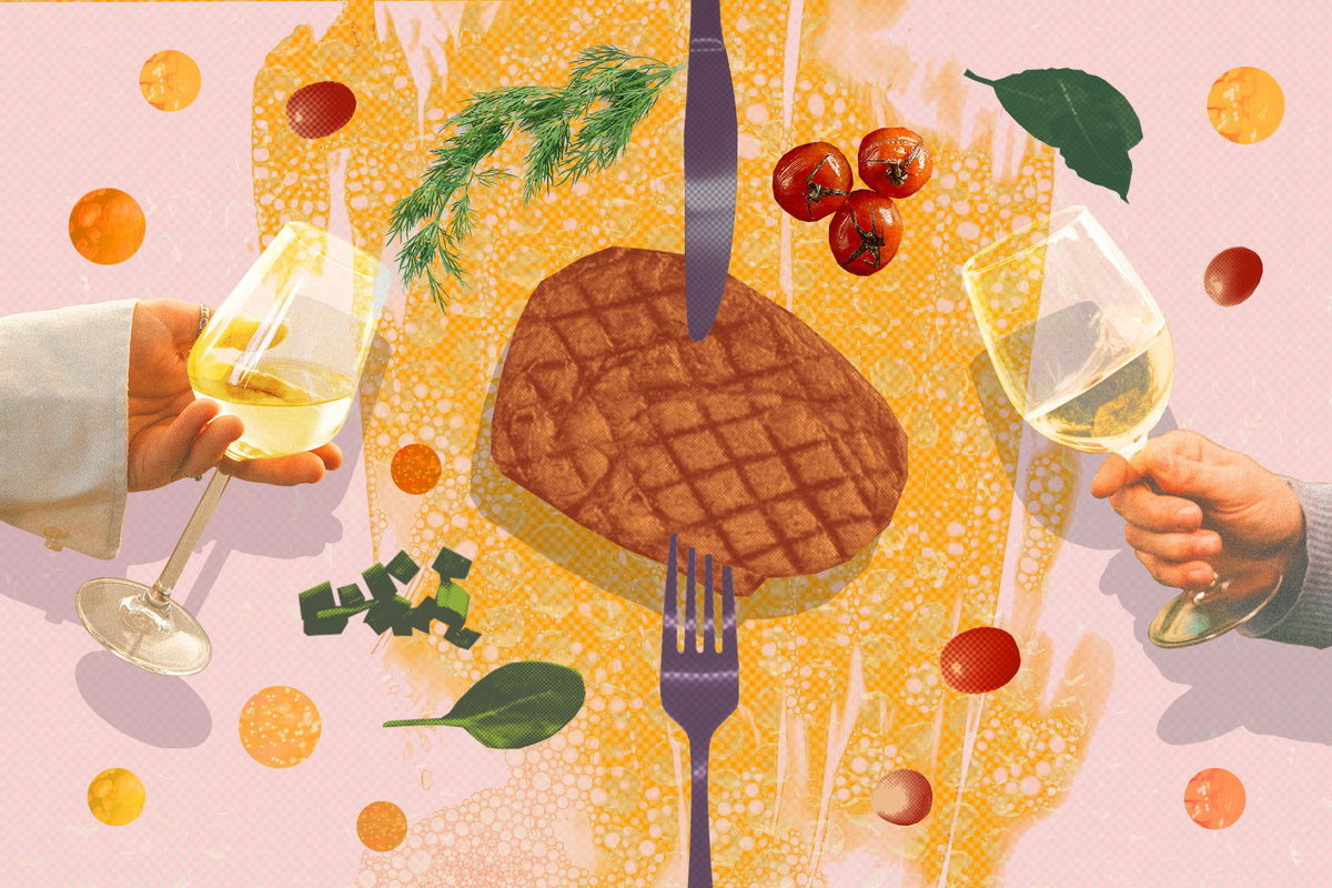 Президент Московской ассоциации сомелье Роман Сосновский рекомендует белые вина к стейку. Классическое сочетание Есть правило фудпейринга: вино не должно уступать по интенсивности вкуса блюду. При этом вкус стейка очень насыщенный. Поэтому и вино к нему должно быть очень насыщенным. Это означает, что к стейку подходят мощные красные вина, которые были выдержаны в бочке. Красное вино сомелье рекомендуют к стейкам и по другой причине. Ягоды для него ферментируют вместе с кожицей, которая содержит танины. Они создают необычное ощущение в ротовой полости: после глотка красного вина внутренние стороны наших щек становятся сухими. Разгадка этого эффекта проста: танины сворачивают белковые соединения, которые содержит слюна. Аналогичный процесс происходит и когда мы запиваем стейк красным вином — оно приятно нивелирует белковый вкус мяса. Стейк с белым вином Белые вина — не лучшая пара к стейкам. Это блюдо принято подавать горячим, а белое вино — холодным. Разница их температур может показать