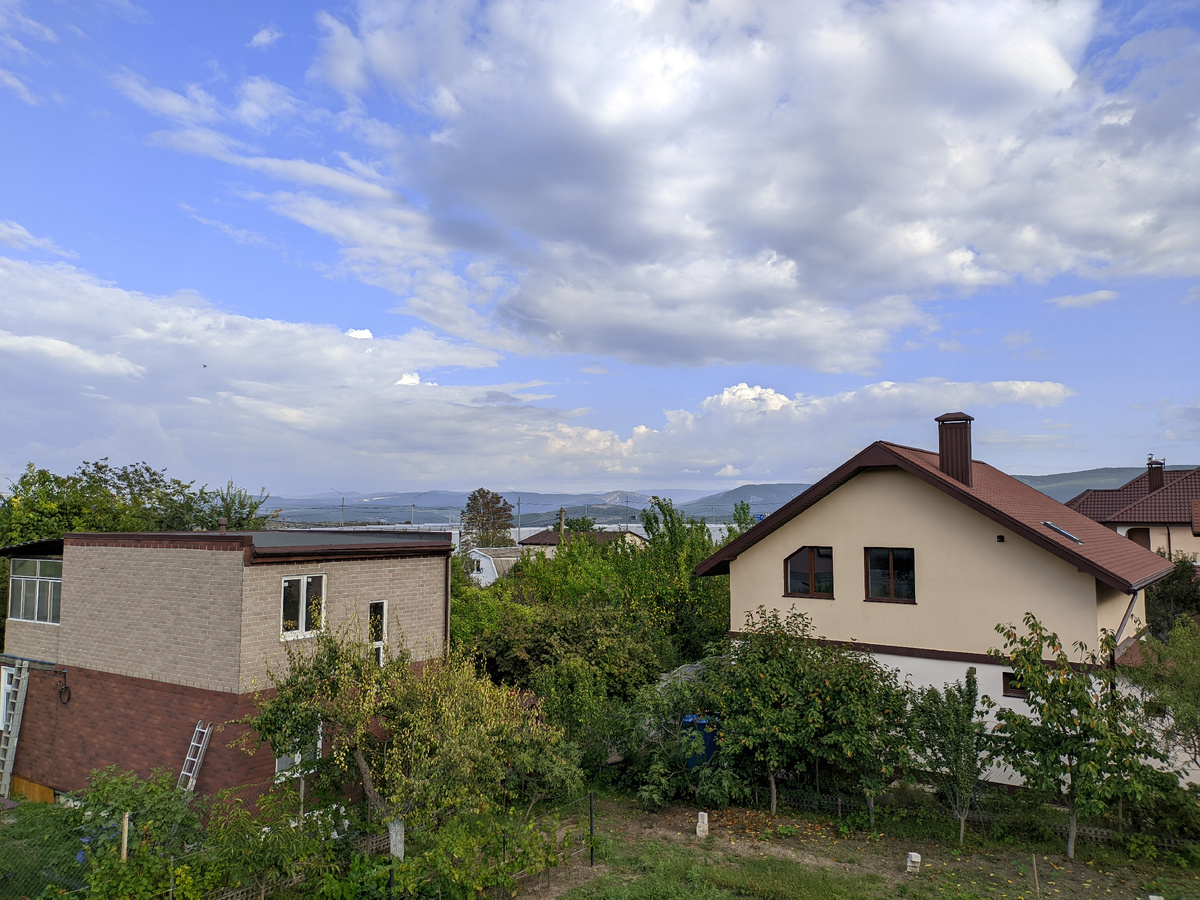 Утро как всегда получилось у Природы замечательное. Тепло, солнышко, голубое небо и белые пушистые облака.
