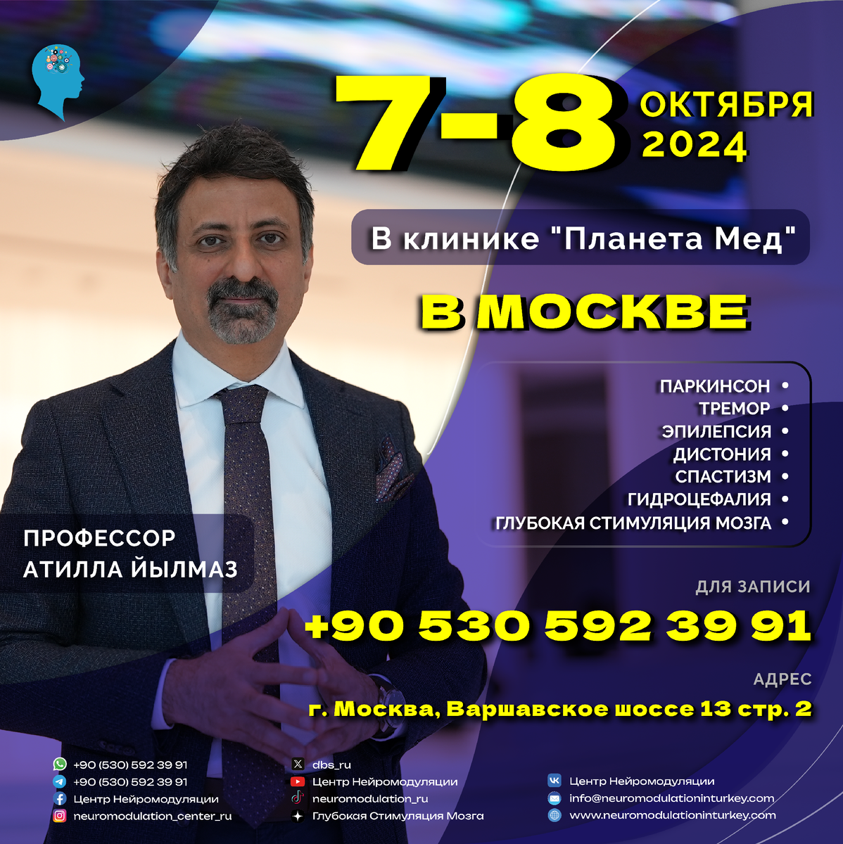π 7-8 ΠΎΠΊΡΡΠ±ΡΡ 2024 Π³ΠΎΠ΄Π° ΠΎΠ½ Π±ΡΠ΄Π΅Ρ ΠΏΡΠΎΠ²ΠΎΠ΄ΠΈΡΡ Π»ΠΈΡΠ½ΡΠ΅ ΠΊΠΎΠ½ΡΡΠ»ΡΡΠ°ΡΠΈΠΈ Π΄Π»Ρ ΠΏΠ°ΡΠΈΠ΅Π½ΡΠΎΠ² Ρ ΡΠ°Π·Π»ΠΈΡΠ½ΡΠΌΠΈ Π½Π΅Π²ΡΠΎΠ»ΠΎΠ³ΠΈΡΠ΅ΡΠΊΠΈΠΌΠΈ Π·Π°Π±ΠΎΠ»Π΅Π²Π°Π½ΠΈΡΠΌΠΈ, Π²ΠΊΠ»ΡΡΠ°Ρ: