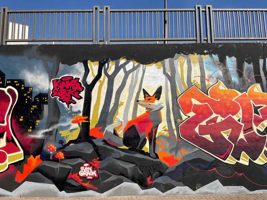 В столице Мордовии на набережной реки Инсар команда художников из разных городов России создает грандиозный арт-объект. На стене общей площадью более тысячи квадратных метров появляются надписи в стиле «Граффити». Все они выполнены разными шрифтами. Среди изображений и символ Саранска – рыжая лиса. Фото: Официальный портал городского округа Саранск