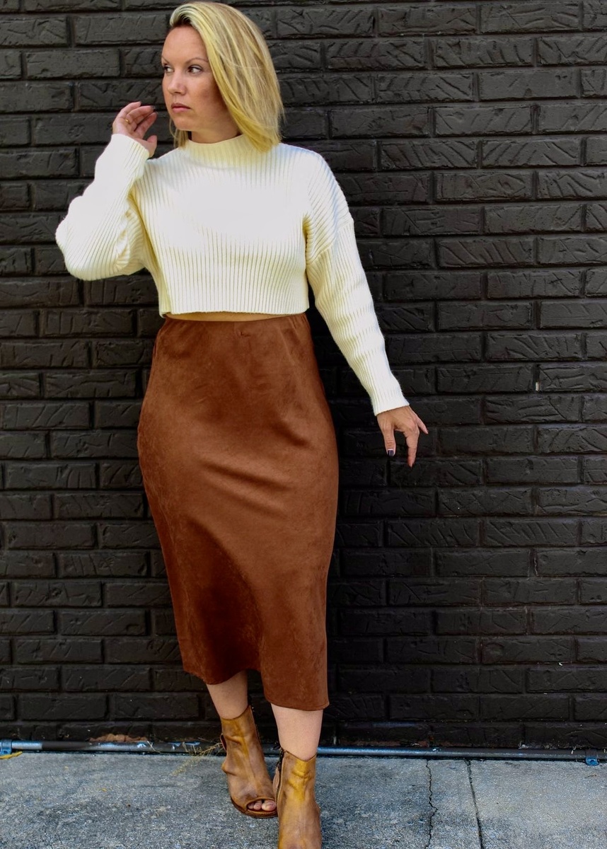 Всем привет! Если вы хотите быть в тренде, а также выглядеть стильно, эта статья приходит вам на помощь. В ней мы обсудим с вами одну нашумевшую юбку, которую вам стоит купить уже сейчас. Она покорила все подиумы и многие от неё в восторге. Так что если вам уже интересно узнать, что же это за юбка, продолжайте изучать статью. Желаю вам приятного прочтения! Итак, не будем долго интриговать и скажем сразу, какая это трендовая юбка – из замши. Думаю вам уже известно о том, что замшевая одежда является сейчас самой популярной этой осенью. И начинался этот тренд с интересных замшевых жакетов, сапог и сумок, и вот наконец пришла очередь для такой шикарной юбки. Данная ткань смотрится просто потрясающе, дорого и стильно. Замшевая ткань проникла во всю одежду и гардероб: куртки, ботильоны, пиджаки, ремни, брюки и т.д. Вся эта одежда и прочее были представлены на популярных модных показах. Известной стала замша из-за слияния нескольких эстетик – ковбойский и бохо стили. Но сейчас этот материал