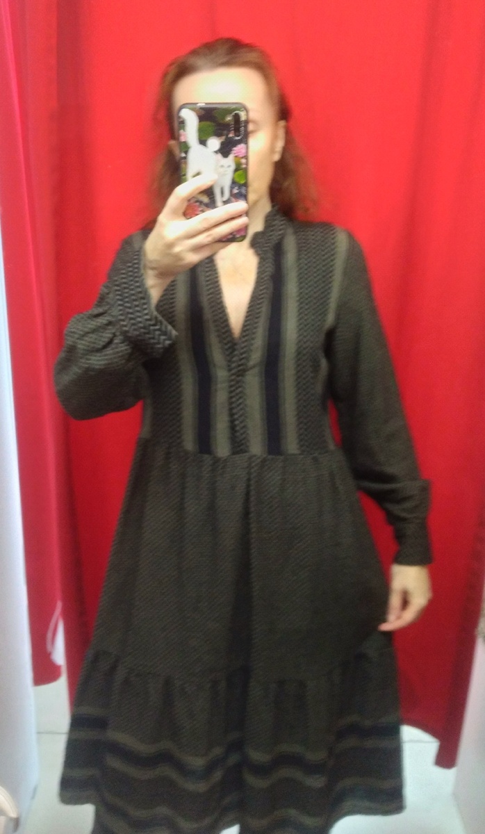 Здравствуйте. Обзор с акции "всё по 100 рублей". Платье болотного цвета. Неплохое платье, оно даже не летнее, а на начало осени подойдёт. Не на мой рост и вырез получается очень глубоким и талия на бедрах, а так можно было бы взять. Жаль, что без состава. А это синтетика сразу видно, но ткань на подкладке неплохая, эластичная, не тонкая и лишнего не покажет, на рукавах ее нет. Платье нюдового оттенка совсем сливается со мной. Платье с короткими рукавами, отрезное по талии, лиф с запахом. Скрин со страницы официального сайта: Датский бренд modstrom. Ещё одно платье с короткими рукавами. По талии нашита кулиска, жаль, что пояс пришит, то есть затянуть по своему желанию и размеру не получится. Короткое платье с застежкой на пуговицах во всю длину, есть пояс. Хлопок. На мой вкус темновата клетка. Худи из хлопка и полиэстера. Не знаю почему он остался до такой скидки, но особо я не приглядывалась. Демисезонная куртка с молнией наискосок и толстым высоким воротником. Много сарафанов