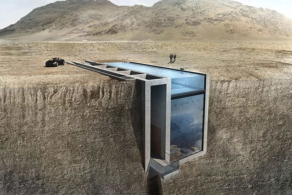Этот дом буквально врезан в скалу над Эгейским морем. Проект, разработанный OPA Works, сочетает брутальность бетона и стекла с гармонией окружающей природы. Стены дома сливаются с природным ландшафтом, а огромные окна открывают потрясающий вид на море. Крыша дома выполнена из стекла и служит одновременно бассейном, который наполняется водой и помогает охлаждать внутренние помещения. Этот дом — пример того, как можно интегрировать жилье в экстремальные условия, не нарушая природной гармонии. Пока дом является лишь наброском в инвестиционном проекте, но уже нашел своего инвестора и эта идея станет реальностью.