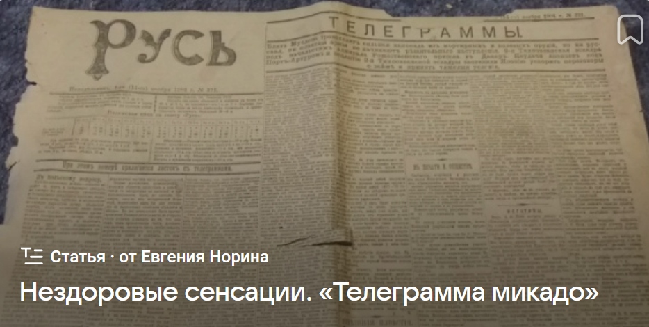 Однако мысль, что эта телеграмма – скажем, придумка нашей эпохи, придется отбросить. Дело в том, что «телеграмму микадо» обсуждали в источниках, сравнительно близких по времени к Русско-Японской войне, в начале ХХ века наш фактоид уже точно бытовал. Это не та ситуация, что с фразой «Бабы новых нарожают», которую к Жукову привязал конкретный человек в начале XXI столетия, и не афоризм «У короля много» о тонущих британских кораблях, придуманный во второй половине ХХ века.