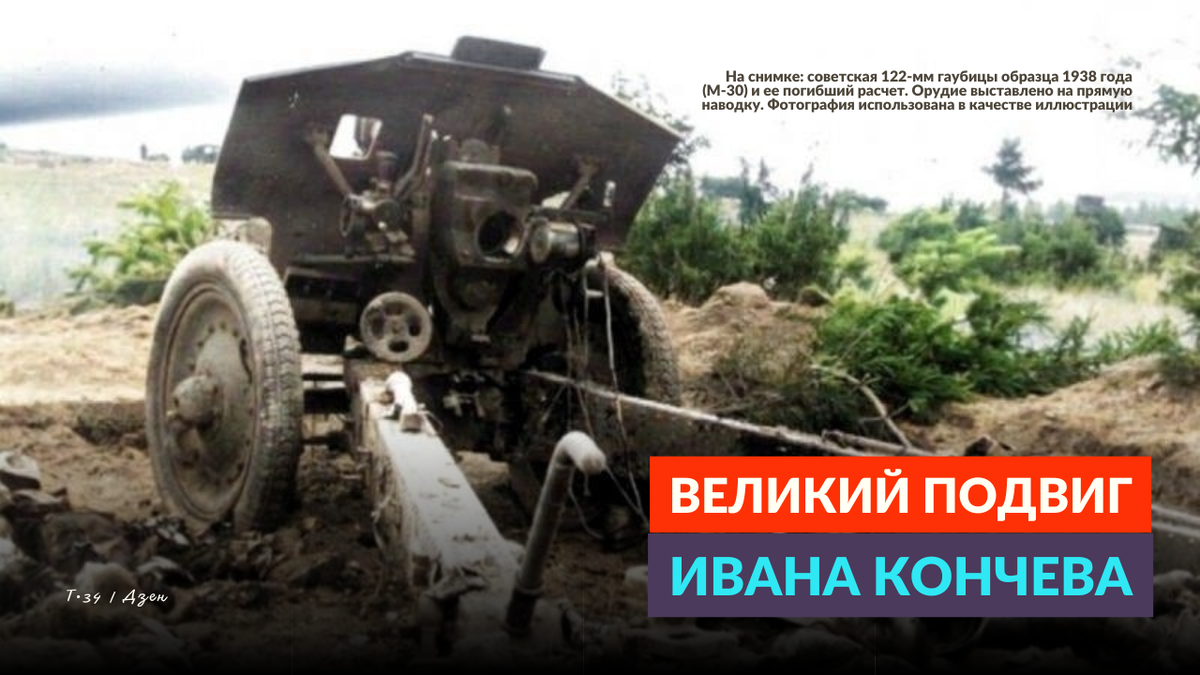В статье, скорее всего, речь идёт о москвиче младшем лейтенанте Кончеве Иване Михайловиче, командире взвода 307-го артиллерийского полка 169-й стрелковой дивизии 18-й армии Южного фронта. По данным ОБД «Мемориал» младший лейтенант погиб в оборонительных боях за посёлок Ямполь Сумской области. Награждён не был.