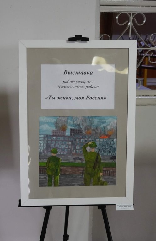 В фойе районного Дома культуры была оформлена выставка работ учащихся Дзержинского района "Ты живи, моя Россия"