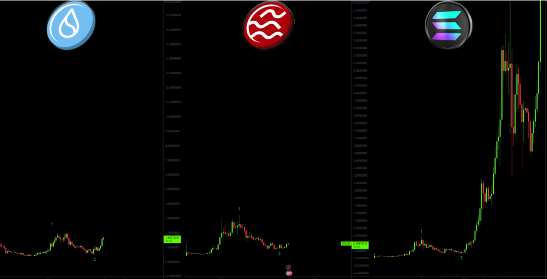 Сегодняшняя среда 25.09.2024 г. принадлежит SEI, по крайней мере, пока. Цена выросла более чем на 27%, что означает, что сейчас SEI торгуется в районе 0,46 доллара. Sei (SEI) - это блокчейн первого уровня и конкурент SUI, Solana и многих других сетей. На самом деле, многие называют SEI прямым конкурентом и клоном SUI. Однако рыночная капитализация SEI значительно ниже - около 1,6 миллиарда долларов, в то время как SUI сейчас значительно превышает 4,5 миллиарда долларов. С другой стороны, Solana - это проект с огромной рыночной капитализацией, который сейчас составляет около 70 миллиардов долларов. Сравнение SEI, SUI и SOL Аналитик Донован Джолли сравнил графики SEI, SUI и SOL, выявив интересные сходства в их ценовых моделях. График SOL показывает экспоненциальный рост после периода консолидации при низких ценах, что приводит к массовому прорыву и быстрому росту цен. Это говорит о том, что потенциал SOL был распознан рано, что привело к параболическому ралли. Ценовое движение SUI отража