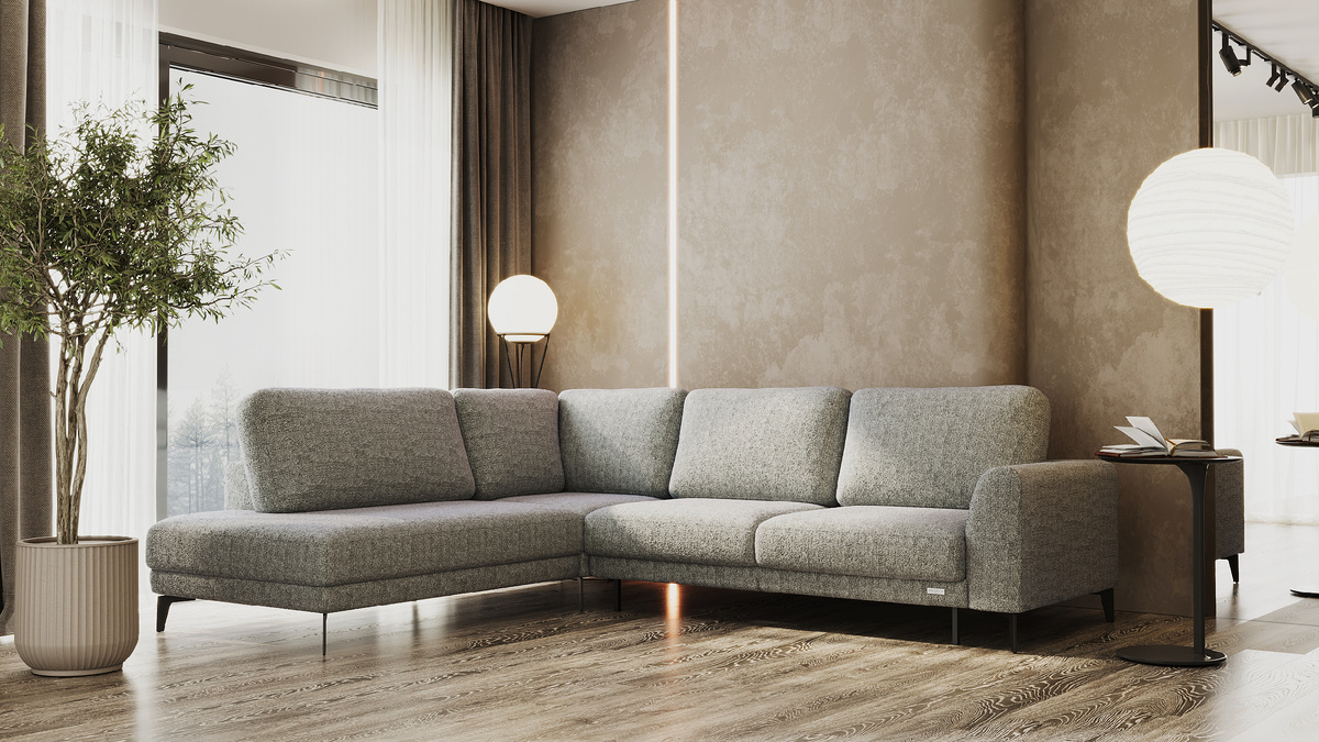 Валики на приспинных подушках позволяют регулировать и фиксировать уровень наклона. Металлические ножки позволят без затруднения произвести уборку под диваном.