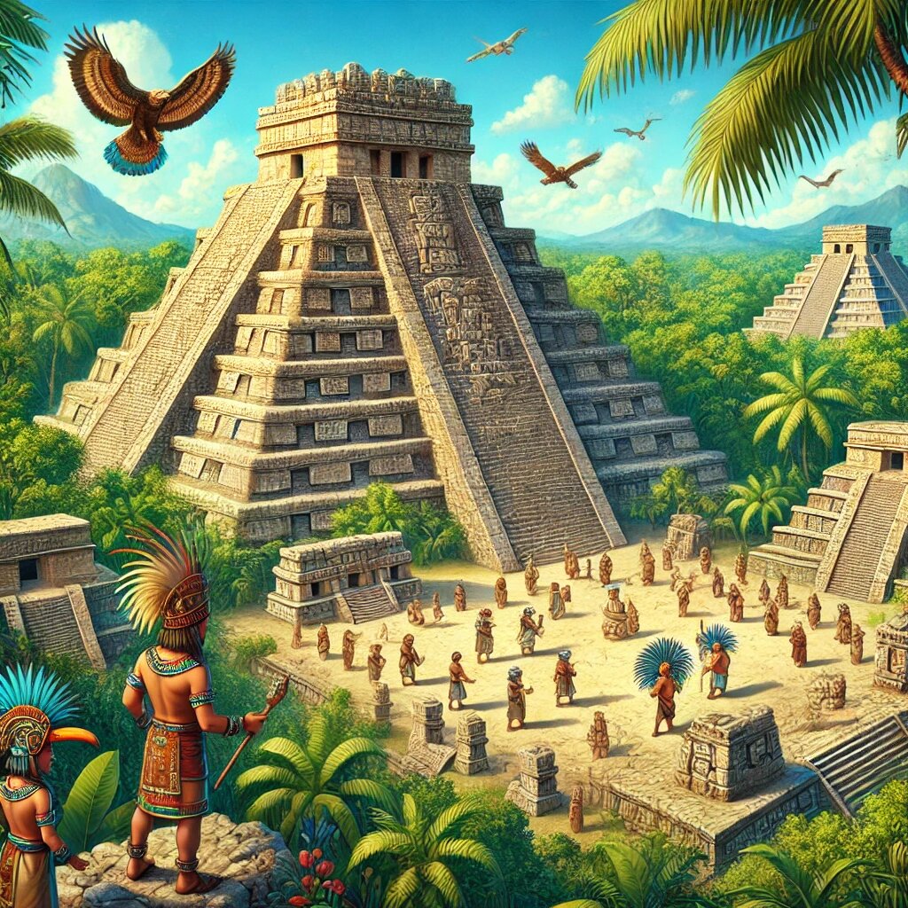 Цивилизация майя — одна из величайших и загадочных культур древнего мира, процветавшая на территории современных Мексики, Гватемалы, Белиза, Гондураса и Сальвадора. Майя известны своими достижениями в астрономии, математике, архитектуре и изобразительном искусстве, а также одной из самых сложных систем письменности в древней Америке. Первые поселения майя возникли еще в 2000 году до нашей эры, однако их классический период процветания приходится на 250–900 годы нашей эры. В этот период майя построили величественные города с пирамидальными храмами, дворцами и площадями. Наиболее известные города-государства майя включают Тикаль, Паленке, Копан и Калакмуль. Каждый город был независимым государством с собственными правителями, жрецами и воинами, что отличает их от централизованных империй, таких как ацтеки или инки. Майя внесли огромный вклад в развитие науки и культуры, особенно в следующих областях: Религия майя была центральной частью их общества. Они поклонялись множеству богов, свя