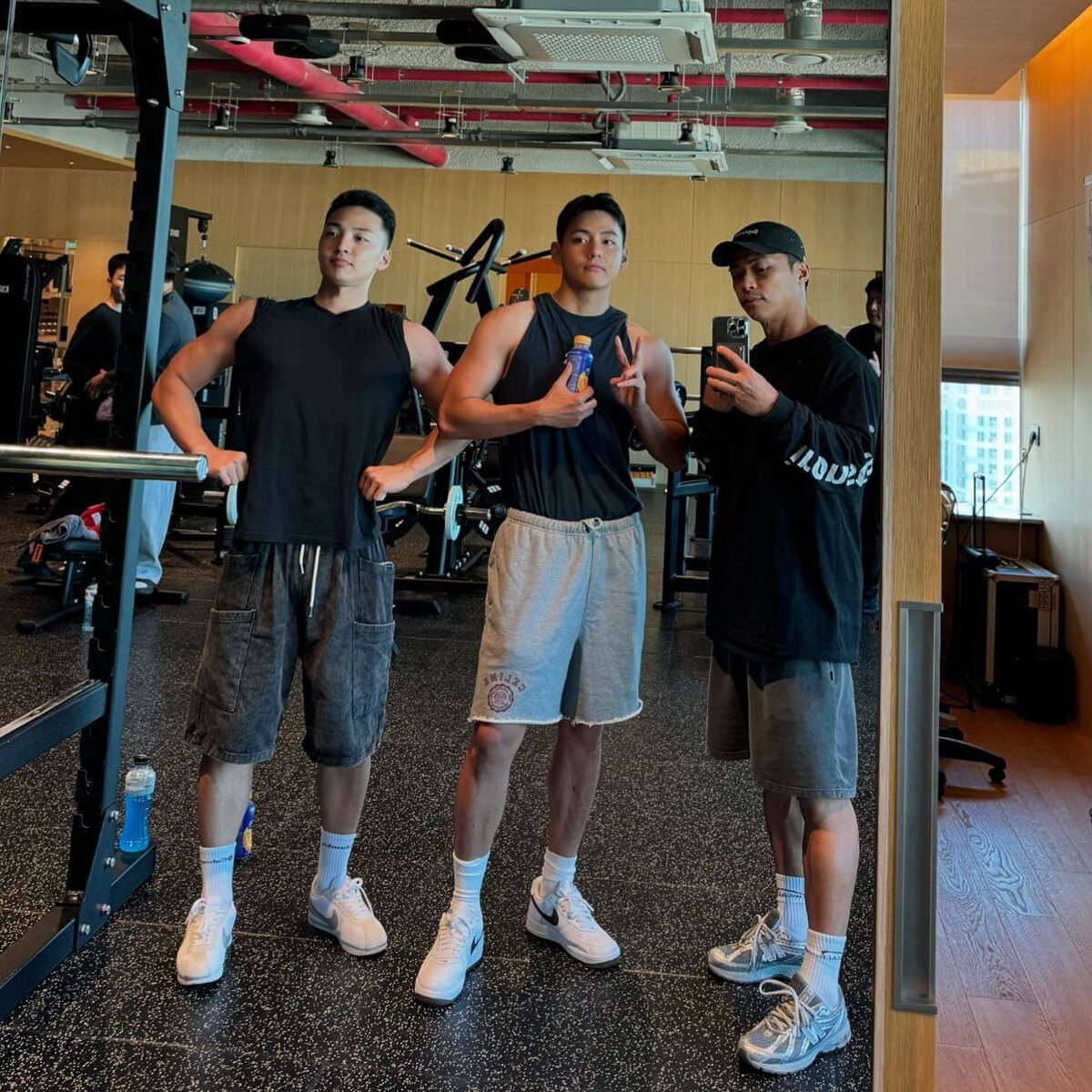 Армейский отдых Тэхёна явно получается богатым на встречи с друзьями, и о чем-то он рассказывает нам сам, а некоторые моменты доходят как раз через тех самых друзей. Так сегодня нам устроили очень нежное пробуждение, благодаря тому, что известный в Корее бодибилдер Ма Сун Хо выложил фото из зала: 💟: Усердно занимаются спортом даже во время отпуска Молодежь которой можно гордиться Тэхён и Минджэ Я завидую их молодости и их красивым лицам... С нетерпением жду следующего отпуска👍🏻 Обязательно еще раз съедим краба в соевом соусе... Ну что же. Протяжное а-а-а-а-а. И давайте поговорим об этом. Разумеется, что мы знали, что Тэхёни заметно набрал массу и нарастил мышцы, он периодически готовил нас к этому, подворачивая рукавчики на футболке и игриво отсвечивая бицепсами. Но вот так, прям вот с ходу, да во всей красе... Я даже не знааааю. На самом деле, он действительно в отличной форме. Поджарый, мускулистый, с широким разворотом плеч и очевидно, что кайфующий от себя. Что, впрочем, сове