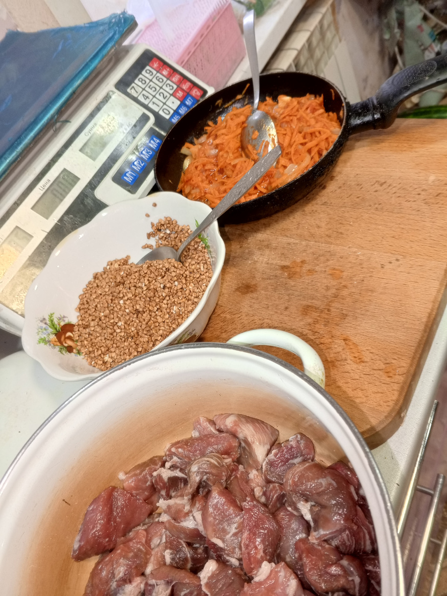 Всем привет мои дорогие подписчики и гости моего канала. Вот решила поделиться впечатлениями о том как готовила гречку с мясом в реторпакете в автоклаве. Подготовила гречку, помыла ее, достала подготовленное мясо, посолила его, сделала поджарку из моркови, лука и томатной пасты В каждый реторпакет положила по перчику душистому, черному и четвертинку лаврушки. Первый делом в пакет ложила зажарку, гречку, мясо и все залила 50 мл воды. В пакет по весу у меня получился 300 гр, плюс минус. Больше в 500 гр пакеты не рекомендуют класть. После запаяла пакеты запайщиком. И все пакеты поставила в автоклав, сверху на пакеты поставила второе фальшдно с грузом и все залила водой. Поставила автоклав на газ. Температуру ра поднималась медленно, после закрытия клапана готовила 40 минут при температуре 120 градусов. Как отключила газ клапан закрыла фольгой, чтоб дольше не открывался. Итог из 5 пакетов два все равно немного лопнули, но не до конца. Видно автоклав всё-таки быстро остыл, а может другая
