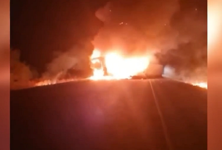 На трассе «Волгоград Москва» столкнулись и сгорели две фуры, погиб человек