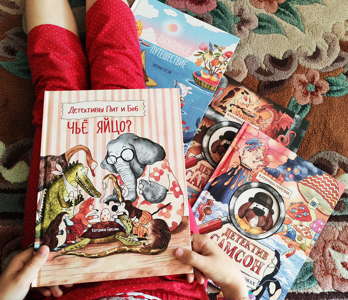 Так называется новая книга Катерины Горелик, вышедшая в издательстве «Поляндрия» — «Детективы Пит и Боб. Чье яйцо?». Поскольку мы с дочкой стали большими поклонницами творчества Катерины, очередную книгу мы пропустить не моги! Это забавная история про двух собак-приятелей-детективов-любителей. Однажды Боб, раскапывая землю у дома в поисках косточки, нашел яйцо. И вот у детективов-любителей задача — найти, кому это яйцо принадлежит. В книге большие забавные иллюстрации с разными деталями, которые всегда любопытно разглядывать, и не большой объем текста. Хороший вариант для первого самостоятельного чтения. А можно не читать, а рассказывать историю по картинкам. Тут кому как больше нравится. Параллельно можно с ребенком изучить тему, кто откладывает яйца. Первым делом друзья отправляются в курятник, потом к эму, черепахе, питону, утконосу, ехидне и крокодилу. Все они откладывают разное количество яиц. Забавная книга дала повод почитать отдельно про упомянутых птиц, млекопитающих и хищнико