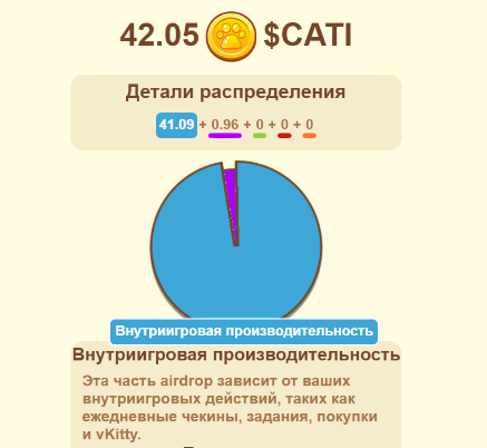 Добрый день, дорогие читатели. Сегодня мне очень хочется коснуться очень известного проекта, в котором я принимал активное участие в самом начале, но потом меня что-то оттолкнуло от него, но как оказалось очень зря. Теперь я вновь активный котовод. Расскажу немного о самой игре. Мы - владельцы котокафе, мы зарабатываем с посетителей, которые гладят котиков и платят нам. Чем больше уровень котика - тем больше платят и наша задача увеличивать уровни котеек, соединяя котиков одинакового уровня из которых получится котик следующего уровня. Можно сказать, что сама механика похожа на Hamster Kombat, там мы коллекционировали карточки и увеличивали пассивный доход, а здесь - увеличиваем уровни котеек, чтобы повышать свой доход. Уровни котов бесконечны. В игре есть несколько типов монет, но я коснусь 2 самых важных - $vKitty и $Fish. - Китти - основной вид денег, на которые мы будем покупать котиков, именно эту валюту мы зарабатываем благодаря котикам. - Фиш - донат валюта, которую мы будем