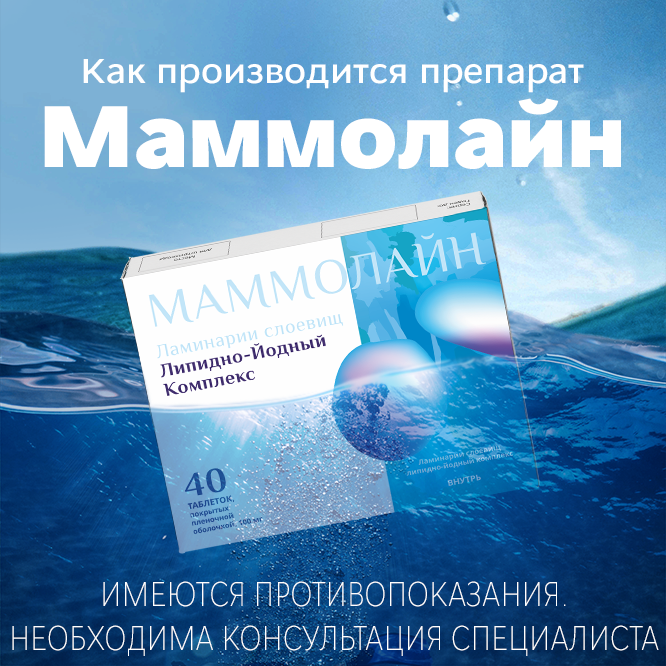 Активное действующее вещество препарата Маммолайн — липидно-йодный комплекс, получаемый из высушенных слоевищ ламинарии.
