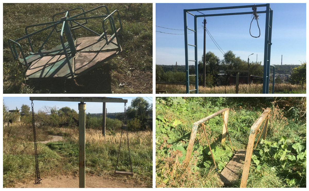 В группе «Алексин Сейчас» в соцсети «ВКонтакте» появились фотографии игровой площадки на окраине Алексина. Автору поста она навеяла тревожные мысли: