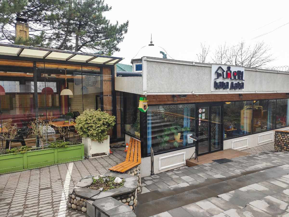 В этом заведении мы решили пообедать после продолжительной прогулки по Пятигорску. Находится оно недалеко знаменитых от Бесстыжих ванн и озера Провал. Оформлено кафе в дачном ярком стиле. Внутри разноцветная мебель, веселые пледы и подушки. На деревьях при входе висят кормушки для птиц. Меню очень обширное. Представлены и кавказская и европейская кухни, разнообразные морепродукты. Очень большой выбор, глаза разбегаются у голодного человека. Все хочется съесть. Листайте галерею, сделала фото меню, чтобы можно было сориентироваться по ценам. Но, в путешествиях мы предпочитаем местную кухню. Поэтому выбрали блюда кавказской кухни. Хинкали в этом отпуске практически всегда присутствовали в наших трапезах. Поэтому из еды заказали хинкали, лепешку с томленой говядиной и салат по-грузински. Так-же, в этом заведении большой выбор различных настоек. Не могли пройти мимо, заказали несколько с разными вкусами, они здесь по 160-180р. за 50 мл. Пока ждали заказ, официант принесла комплимент от каф