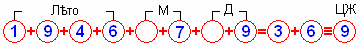 * Правильнее говорить «цифра жизни», потому что мы пишем по-современному, т.е. цифрами, а не числами (числа записывают буквами или рунами, тьрагами). Пример: 9 июля 1946 года (1+9+4+6+0+7+0+9 = 3+6 = 9) * В пустых кругах нули: месяц 07, день 09. В конце знак соответствия. 1 – Точка опоры. Человек, на которого можно положиться, который для достижения цели берёт всё на себя, решает всё сам. 2 – Таран. Человек, который идет напролом к своей цели, невзирая ни на какие препятствия. Достижение цели для него важнее всего, может и закон нарушить. Для таких людей есть выражение: «цель оправдывает средства». 3 – Мужское начало. Мужественный человек, стойко переносящий любые невзгоды, любящий покровительствовать и устраивать вокруг себя доброжелательную