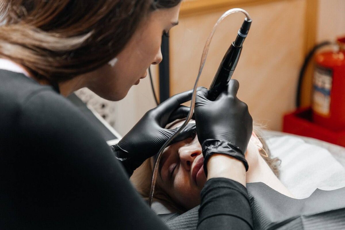Первое, чем можно выразить линию взгляда — это брови. О них и поговорим. Брови самая популярная зона в моей практике. Моя философия работы с бровями — чем естественней, тем лучше. Для всех. Запрос клиента из серии «навсегда, потемнее, почетче, подлиннее, перекрыть серый/красный татуаж», либо не обрабатывается мной, либо мы его хорошенько обсуждаем, прежде чем приступим к каким-либо действиям. Да, строго, зато честно. Во взаимодействии с клиентом все же профессионал я, и я всегда детально объясняю, что будет в том или ином случае. Как показывает практика татуажа прошлых лет, сделать много времени не нужно, а вот попрощаться с тем, что не устроило и так прочно прижилось в коже, очень проблематично. Я занимаюсь удалением и знаю, о чем говорю. Не планирую никаких сделок с собственной совестью, поэтому работаю в четком протоколе, но с учетом индивидуальных особенностей кожи клиентки. Пудровые брови, а также Пудровые волоски выполняются неглубоко, нетравматично, с использованием