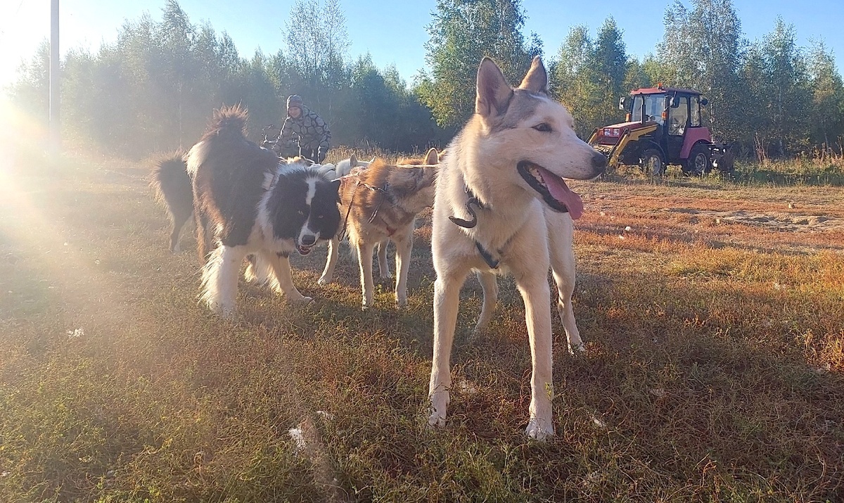 Когда я первый раз запрягла Крошу, то ожидала многого. В смысле сложностей, а не больших достижений. Однако она побежала так, как будто это было для нее обычным делом, чем удивила и в то же время вдохновила меня. Потом я запрягала ее в велосипед и даже брала в паре с кем-то: все было прекрасно. И поэтому на днях решила испытать Крошу на гостевом кругу, который она хорошо знает, во главе упряжки. Она стояла впереди одна, а за ней (также одного) я пристегнула Кекса – на всякий случай. Если Кроша выйдет из-под контроля, я смогу управлять упряжкой через надежного якута. Около километра Кроша шла великолепно. Кекс, конечно, возмутился и даже попробовал «наехать» на тех, кто был позади него, но молодая хаски задавала такой темп, что якут быстро понял, что ругаться и одновременно быстро перебирать лапами, не сбивая дыхание, он не может. И вот я уже расслабилась, уверенная, что так мы и доедем до дома, как Кроша (как это обычно бывает во всяких фильмах) неожиданно решила, что с нее хватит, и р