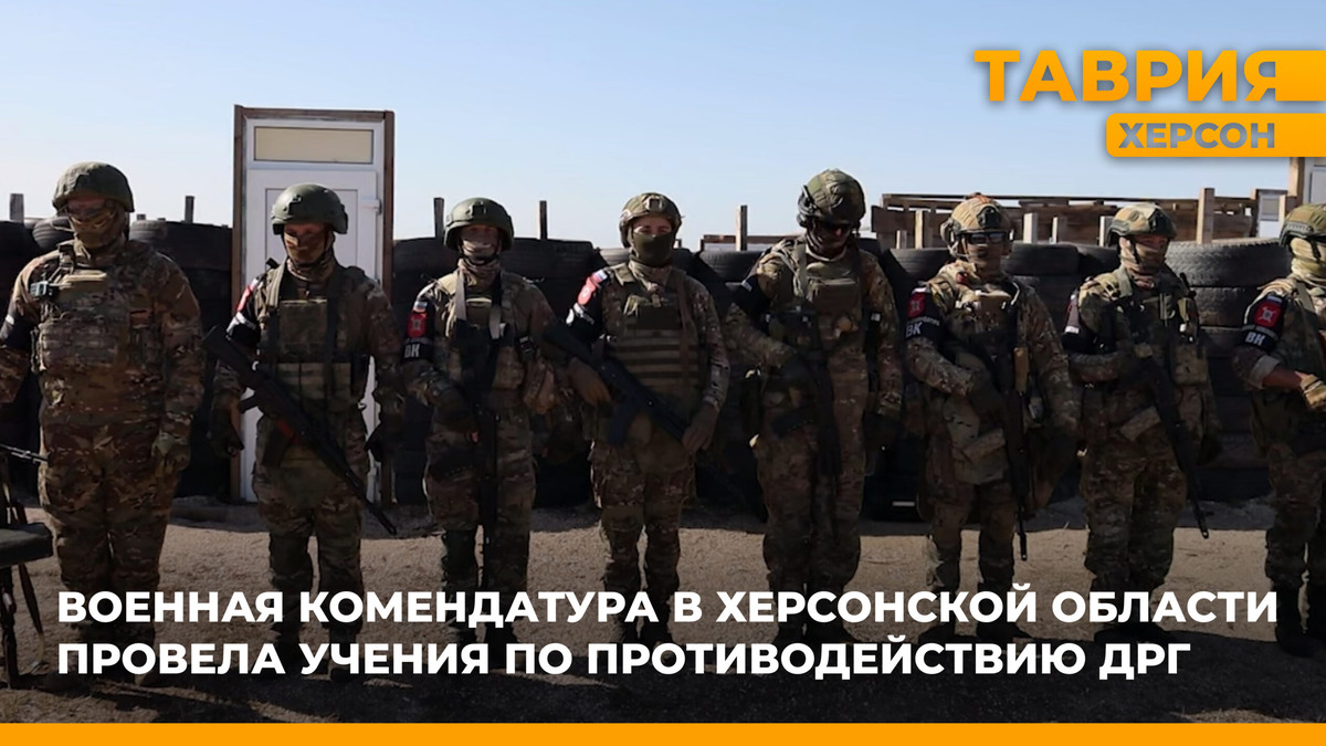 Сотрудники военной комендатуры Херсонской области провели учения по обеспечению безопасности и борьбе с диверсионно-разведывательными и незаконными вооруженными формированиями. Корреспонденты ТРК «Таврия» посмотрели за действия ми силовиков на полигоне. В ходе учений штурмовая группа действовала совместно с оператором БПЛА. С воздуха проводилась корректировка действий пехоты, которая ликвидировала группу условных диверсантов. «В ходе учений использовались два дрона разведывательного типа. Один был со сбросным механизмом, который в принце и поражал мишень сбросом ВОГа. Второй проводил разведку местности и подтвердил поражение цели», — рассказал военнослужащий военной комендатуры Херсонской области с позывным Пуша. Кроме отработки ликвидации условной ДРГ бойцы военной комендатуры отработали стрельбу по мишеням и оказание первой помощи на поле боя. За 2024 на полигонах Херсонской области подготовили больше 5 тысяч военнослужащих. Направления их деятельности– противодействие диверсионно-ра