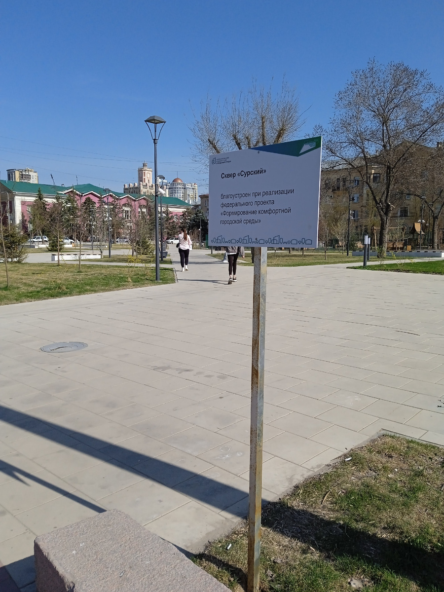 Всем привет. Люблю прогуляться в центре Волгограда, где красиво и много значимых мест. Сегодня покажу вам сквер "Сурский", который иначе называется "Сквер строителей". Находится он на улице Краснознаменская, это центр Волгограда. Честно говоря, смутно помню этот сквер до реконструкции, но сейчас он хорошо благоустроен, появились интересные объекты. После ремонта сквер был открыт в сентябре прошлого (2023) года, то есть год назад. На входе в сквер есть табличка, где можно прочитать его название. Оригинальность и значимость этому месту придаёт сама его концепция. Здесь расположены модели узнаваемых зданий, которые являются своего рода "визитной карточкой" Волгограда. И они словно объединяют разные периоды из истории нашего города. На входе в сквер со стороны Краснознаменской видим два здания, относящихся к современному периоду. На постаментах сделана надпись "Волгоград". Так, с правой стороны находится модель Александро-Невского собора, сейчас это кафедральный собор Волгограда (находится
