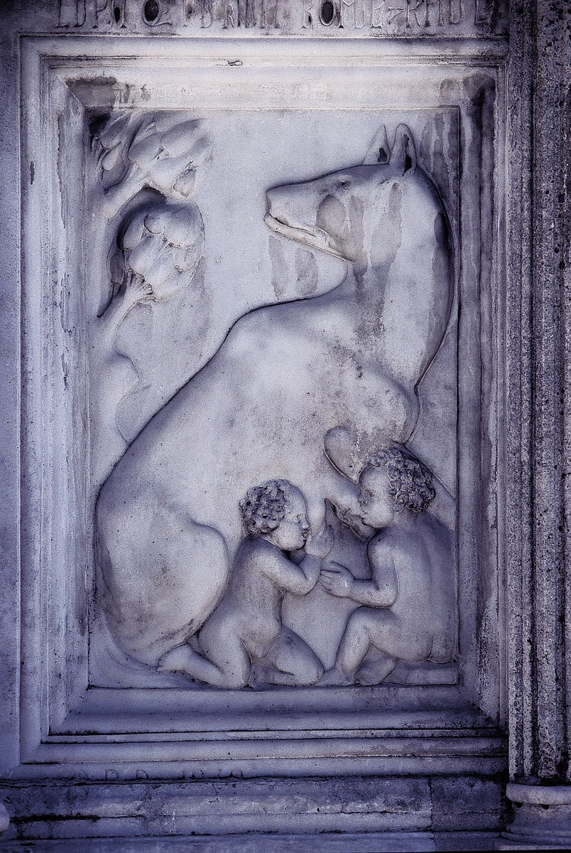 Считается, что младенцев спасла и выкормила волчица, которая нашла их у подножия холма в тени фигового дерева (это дерево долго считалось священным). В древнеримском искусстве этот момент часто изображался как символизирующий защиту и силу Рима, а сама волчица стала олицетворением города.
