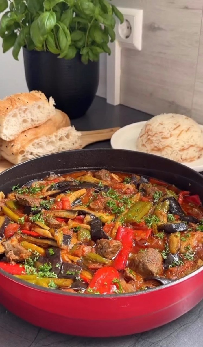 Мясное рагу с баклажанами. Вкуснейшее тушеное мясо с овощами