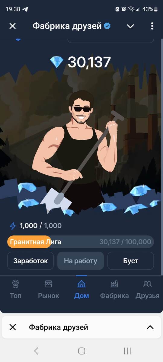 Fabrika - новый рейтинговый проект в Telegram! от создателя Major Новая крутая игра Фабрика от создателя Major Вот что пишут создатели фабрики о своей новой игре: ⚙ Готовы взрывать? Всё это время мы работали не только над Major — релиз Фабрики в формате mini-app состоится уже завтра! Дата выбрана неспроста — ровно год назад Павел Дуров приобрёл юзернейм @Fabrika, который любезно предоставил нам в пользование для игры Вас ждут: — Новый, крутой интерфейс (в коллаборации с Павлом 🤫) — Тяжёлые битвы за своих и чужих рабочих — Интриги и заговоры с целью взорвать чужую фабрику (пока владелец сладко спит 😴) — Токен $FAB (Soon...) Заинтригованы? Освободите завтрашний вечер — будет жарко! Сегодня игра уже вышла, можно регистрироваться и начинать играть. Что делать: Заходим в игру и забираем ежедневный бонус Выполняем простейшие задания - подписки на каналы и получаем бонусы. На полученные монеты начинаем создавать фабрику, нанимать рабочих и зарабатывать токены. А вступить в игру можно здесь