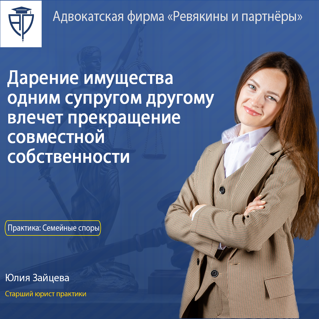 Дарение имущества одним супругом другому влечет прекращение совместной собственности.