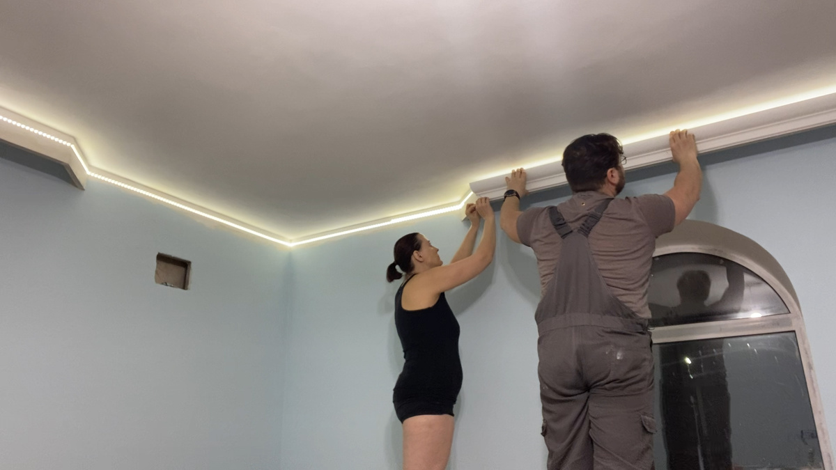 Продолжаю рассказывать про ремонт в нашей спальне. Да, переехали мы в эту комнату еще в октябре, а рассказать поо все нюансы, сложности и наши косяки я так и не успела🤷♀️. Поэтому продолжаю публикации на эту тему. К тому же, есть чем поделиться. Мне очень хотелось красивые плинтуса на потолок с подсветкой (уже писала об этом) и на пол. И чтобы они были красивыми гипсовыми, а не пластиковыми. Понятно, что мужу я с этими плинтусами вынесла весь мозг😂 Так как у нас в городе такое даже не продавалось, мы поехали в Челябинск. Нашли, купили. Потолочный плинтус обошелся нам в 24 тысячи рублей, на пол почти 14. Еще и клей для него специальный покупали. Отдельный для стыков и отдельный для соединения плинтуса и стены. А муж даже специальную пилу купил, чтобы красиво все углы отпилить 😂 Конечно, без косяков не обошлось. Первые уголочки получились далеко не идеальными, да и клеить мы не сразу приспособились. Впервые такое делали с мужем. Зато последние уголочки ложились уже просто идеально.