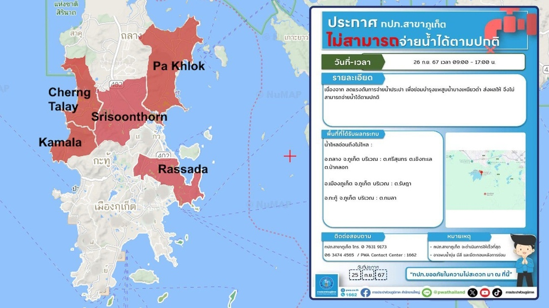 Информация о ремонте была опубликована только вчера во второй половине дня и распространена Департаментом связей с общественностью Пхукета, который, как правило, игнорирует плановые работы PWA.